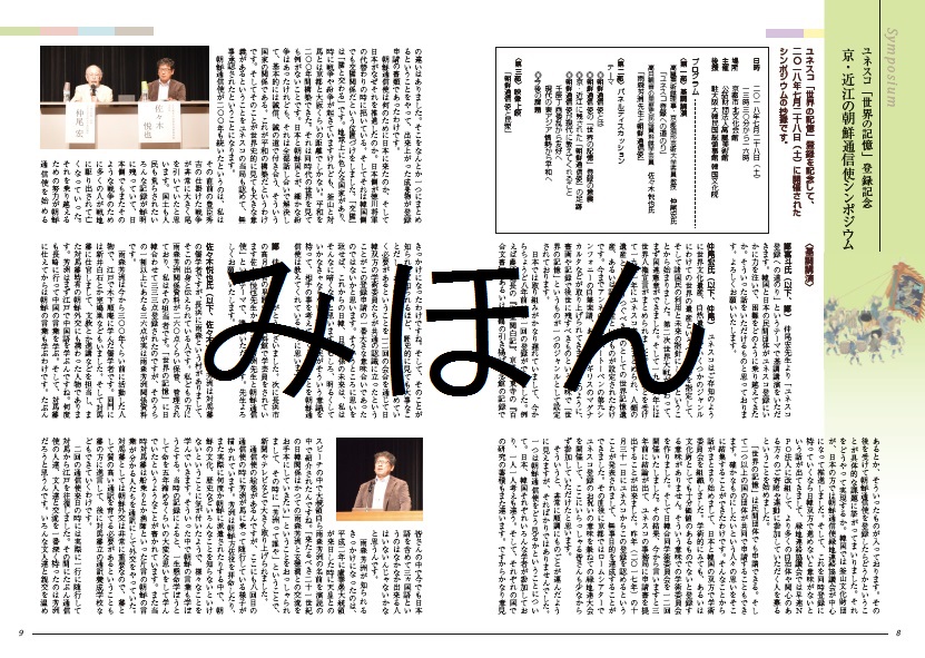 本号は朝鮮通信使のユネスコ「世界の記憶」記念として7月に開催されたシンポジウムの講演内容の抄録と、館報読者の皆様のお言葉を頂いた内容など掲載しており、新年を迎えるふさわしい内容になったのではないでしょうか。