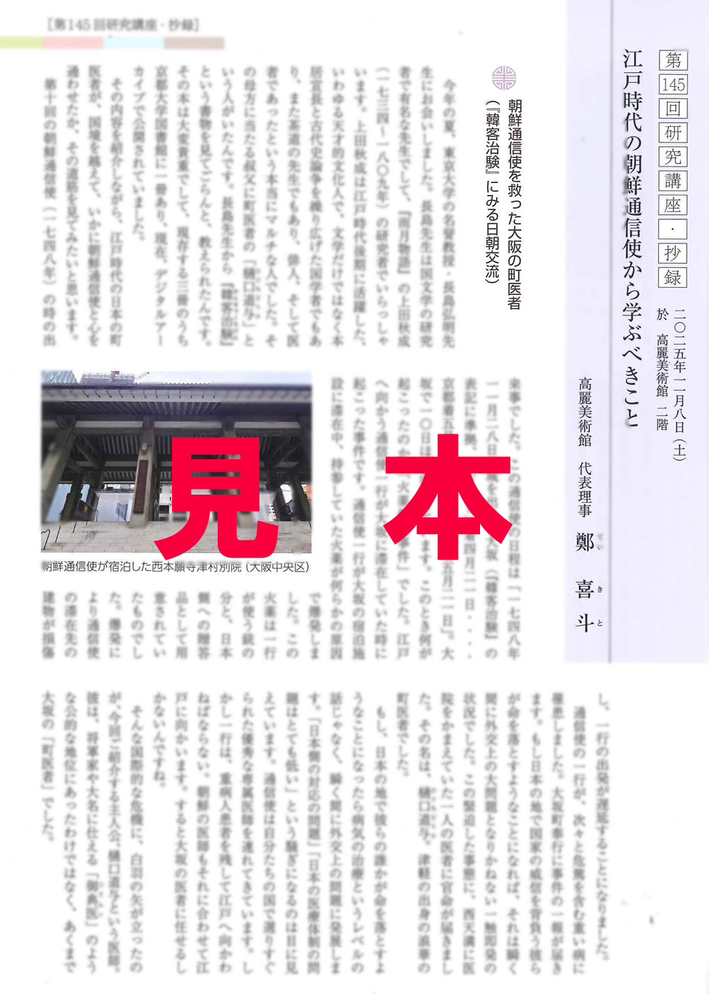 ・第145回研究講座抄録「江戸時代の朝鮮通信使から学ぶべきこと」