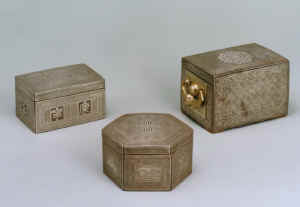 | ■主な出展品 | ・銀入糸吉祥文六角盒 ・黒漆螺鈿葡萄栗鼠文文書函 ・網巾箱 ・華角張箱 ・木製八角箱 など 総出品数約50点 |