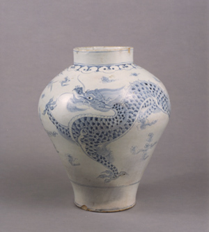 朝鮮時代は1392年から1910年までの王朝である。およそ一貫して、倹約を美徳とする風潮の強い社会であった。それを如実に表しているのが白磁の隆盛である。朝鮮の王朝を通して、それは連綿と焼かれ、やがて時代が下がるにつれ、人々の生活容器として使用されるようになった。それとともに「もてなしの器」としての役割を担っていたのが青花である。この二種のやきものはまさに朝鮮時代の文化の象徴といえるであろう。秋の企画展では、それらを通して、朝鮮美術の特色と文化・歴史の一端を感じていただきたい。